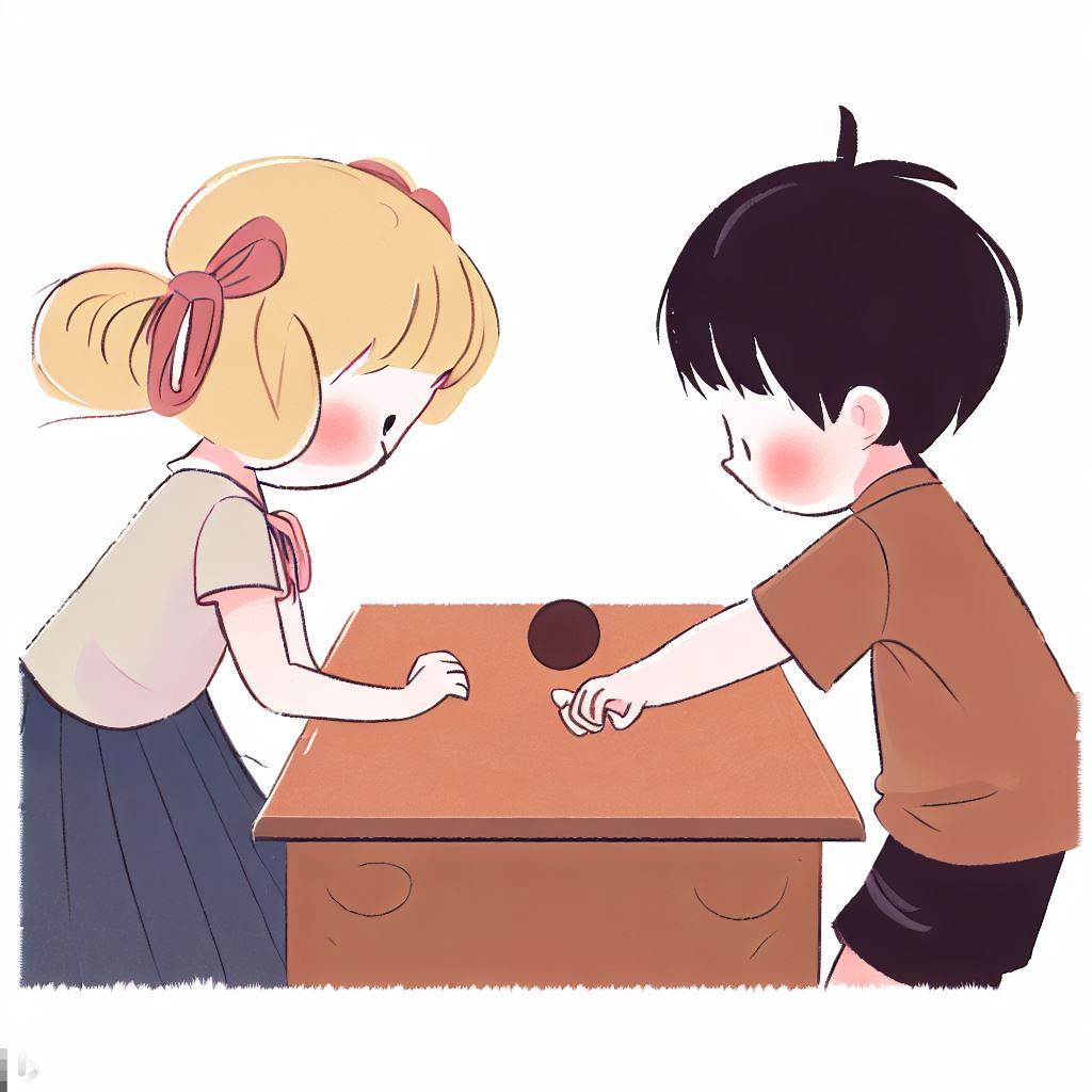 - 「スタート」の合図で、10円玉1枚を取りテーブルの上に立たせる。