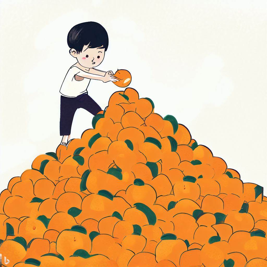 - 「スタート」の合図で、箱からみかんを取り出し、積み上げる。みかんの積み上げ方は自由。