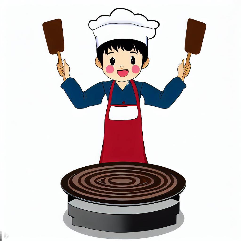 丸い鍋敷きをお好み焼きに見立て、2枚のへらで20枚全部をひっくり返した時間が記録になります。