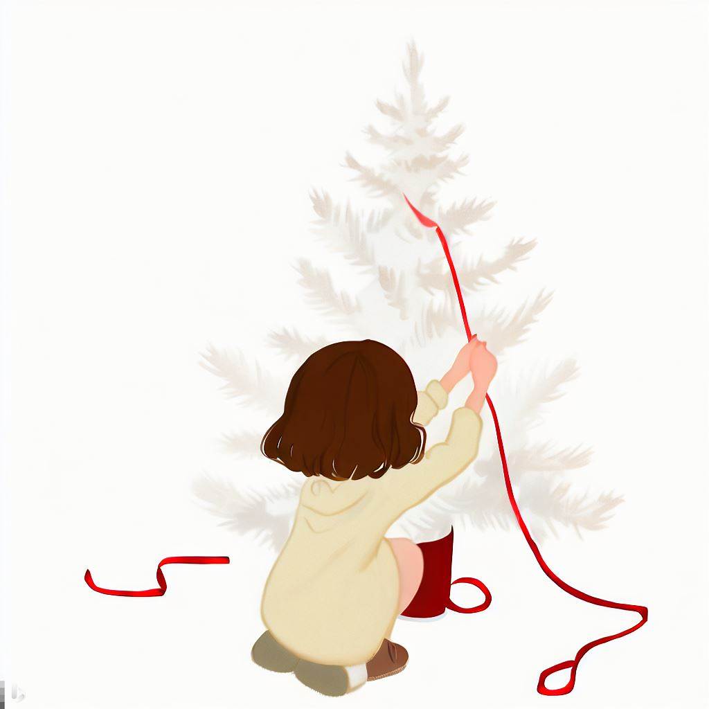 - 結び付けた紐の端を、ツリーの枝に結びつける。
