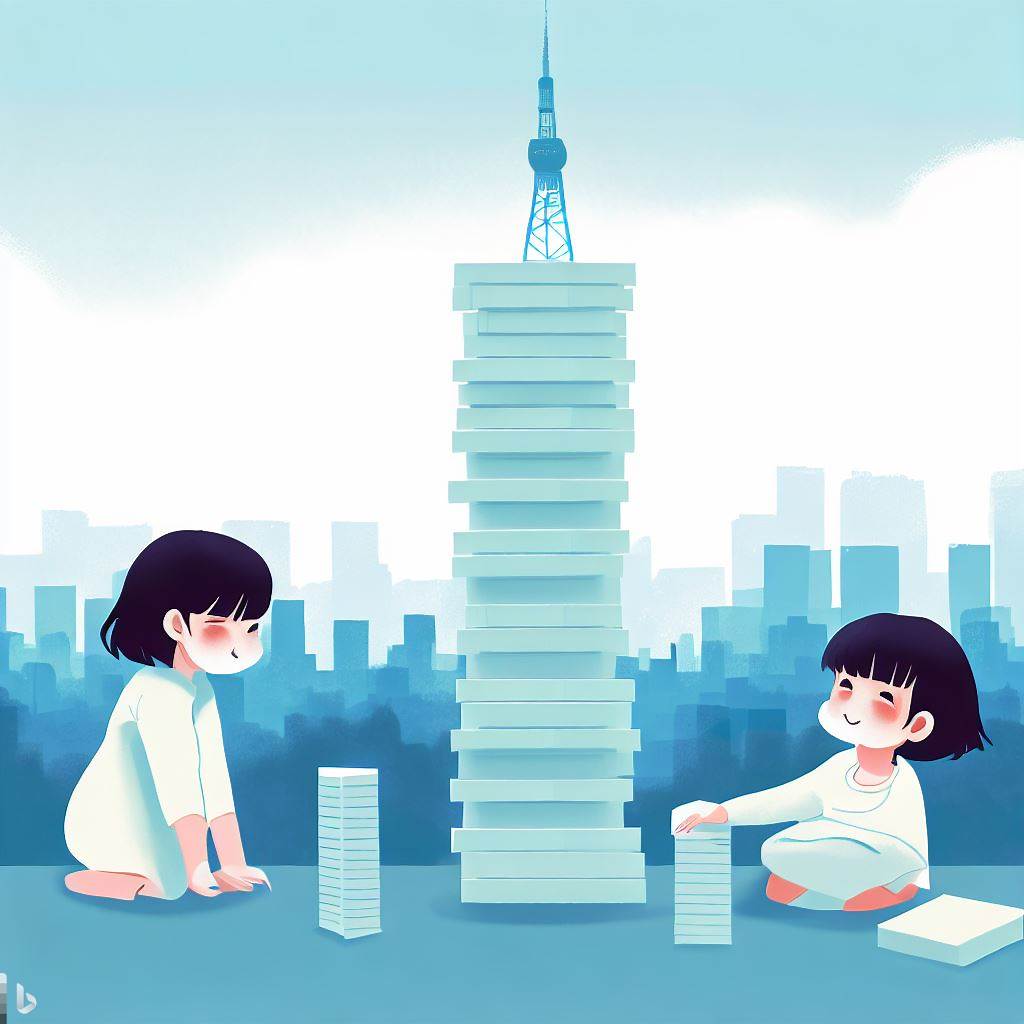• 積み重ねている途中で崩れたら挑戦終了。崩れずに残っていた枚数で一番上に残っていたカードの番号が記録となる。